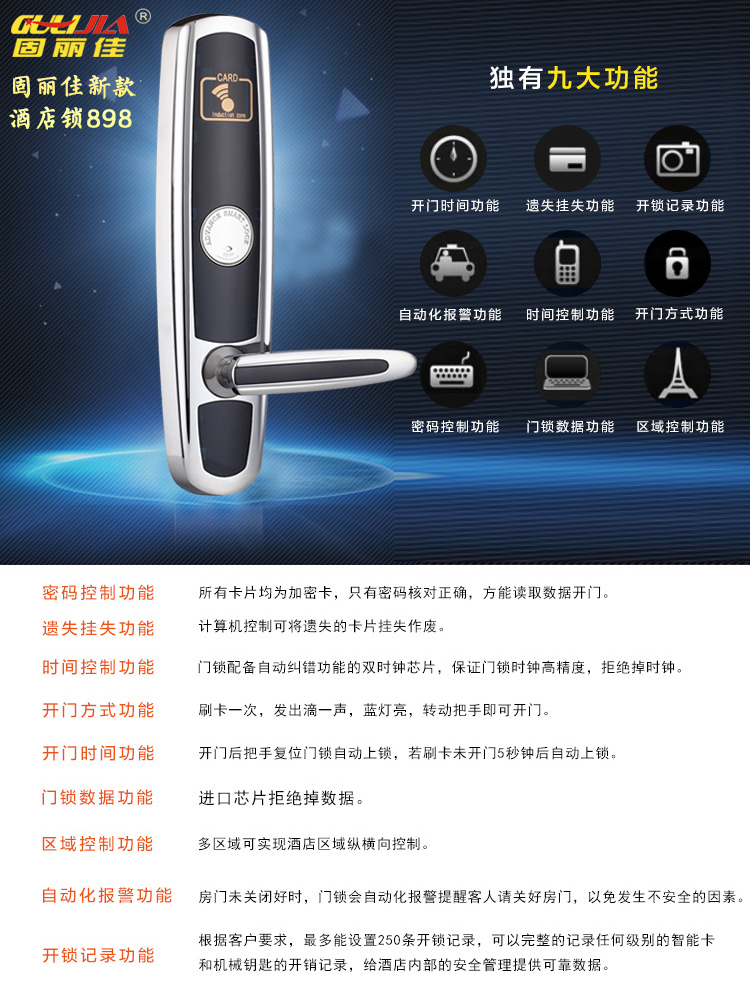 固麗佳智能酒店鎖優(yōu)勢特點(diǎn):