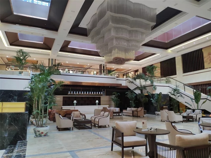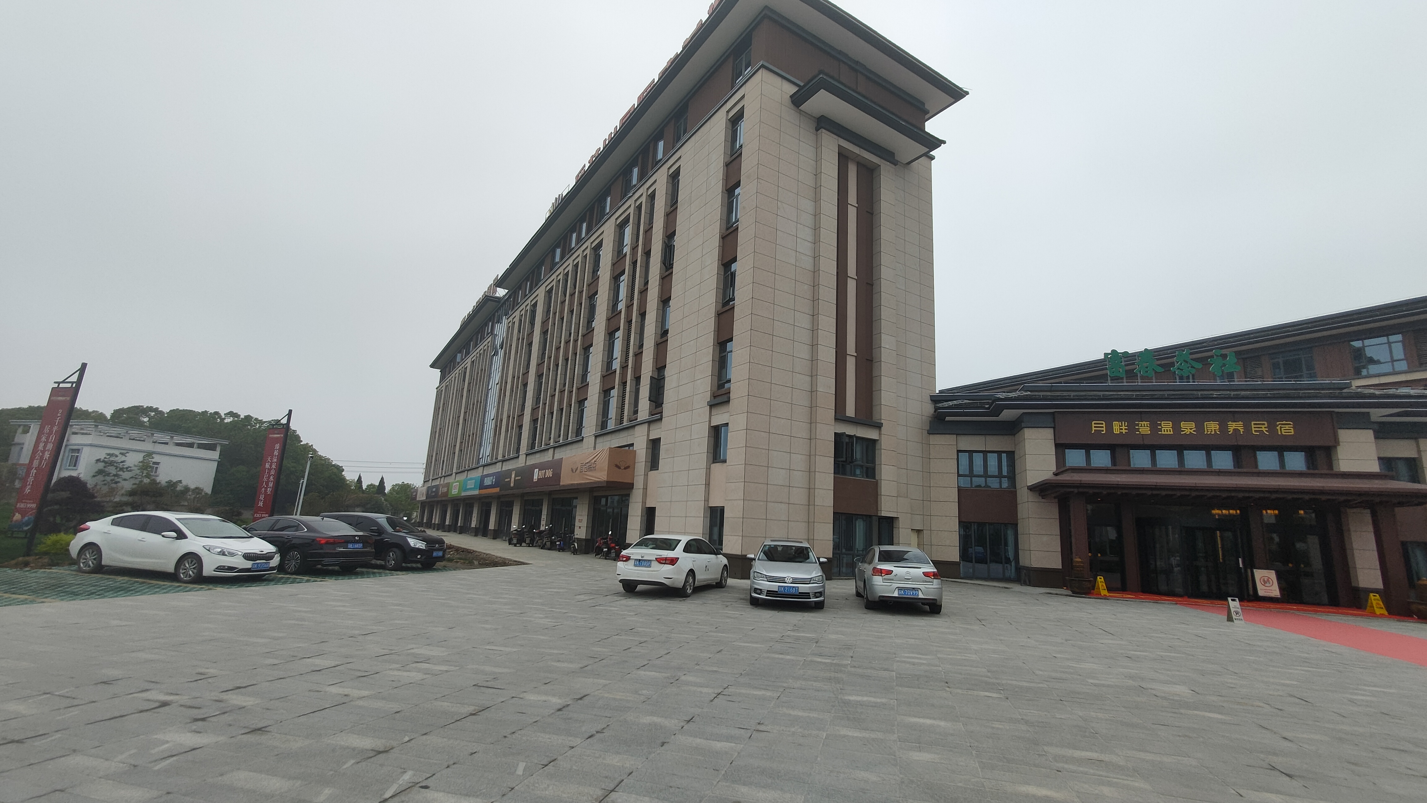 揚州月畔灣溫泉酒店位于美麗的揚州西郊山水生態名鎮、國家首批特色小鎮--月塘,緊鄰石柱山(捺山),在石柱山國際康養城核心位置,酒店占地面積約1萬平方米,總建筑面積約為2.8萬平方米,由一棟五層的主體樓和兩棟附屬樓組成,按國家標準五星級酒店設計、建設,配備空中溫泉、生態客房、特色餐飲、健身游泳、商務會議、汗蒸洗浴、棋牌娛樂等設施。