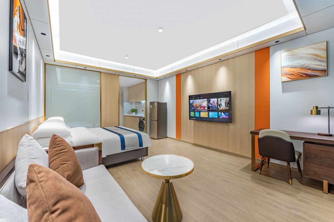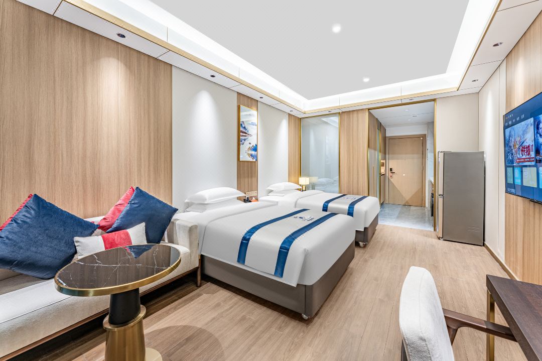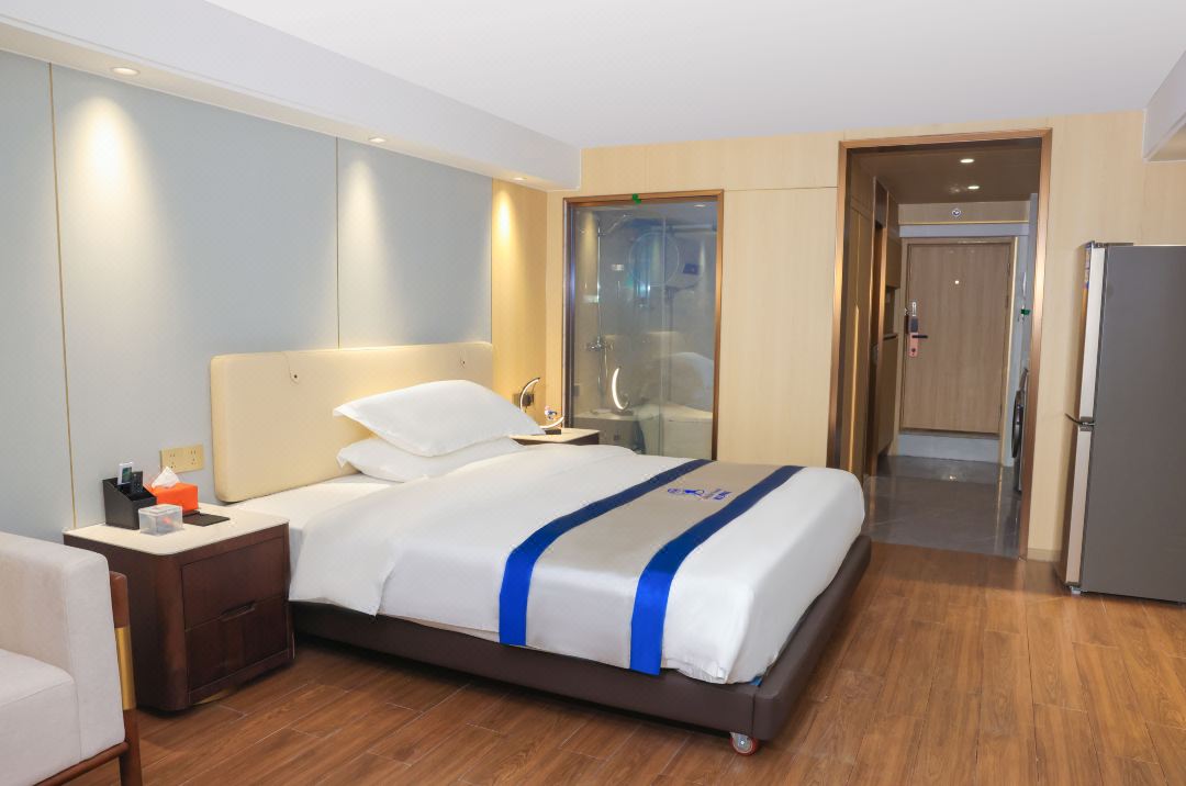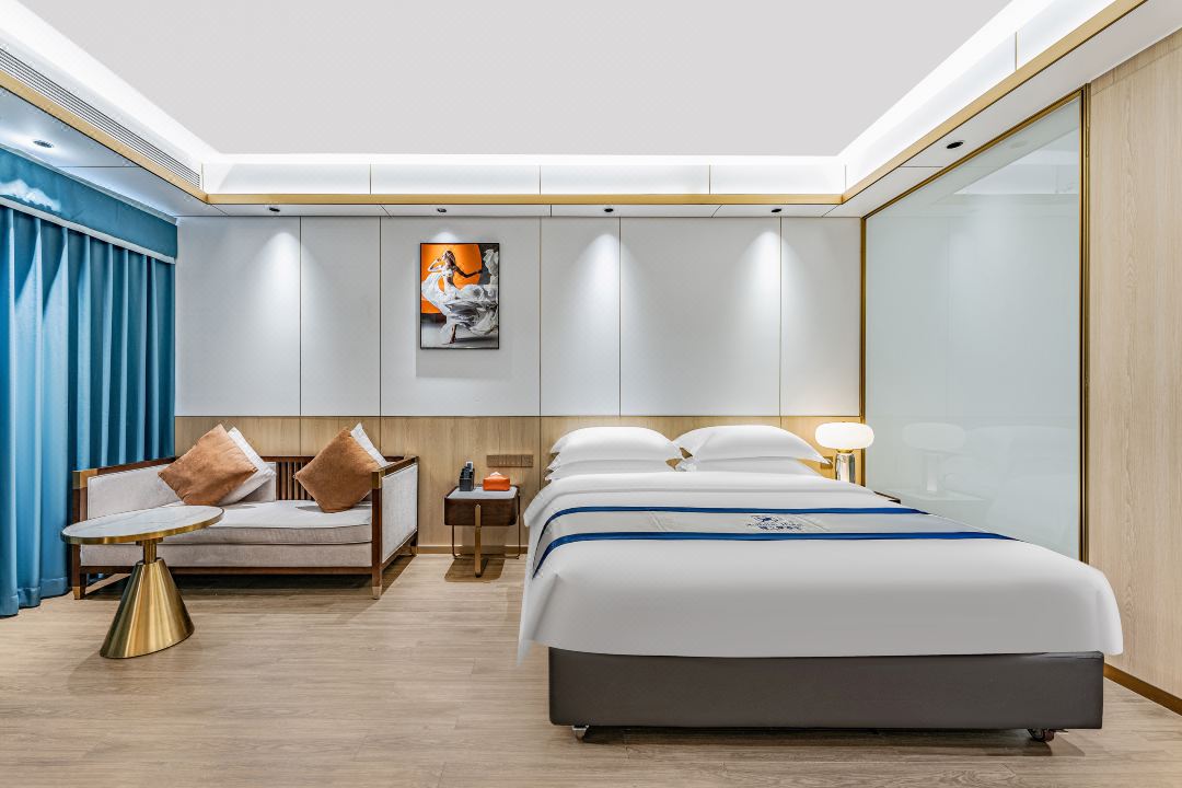 禧之萊酒店采用無甲醛高端材質裝潢,標配全智能語音,極力打造體驗式的居住環境,酒店配有會議,豪華的餐飲包房及包間,房間內設有洗衣機,冰箱生活配套設施,讓您新體驗品質和服務于一體的高端感受。