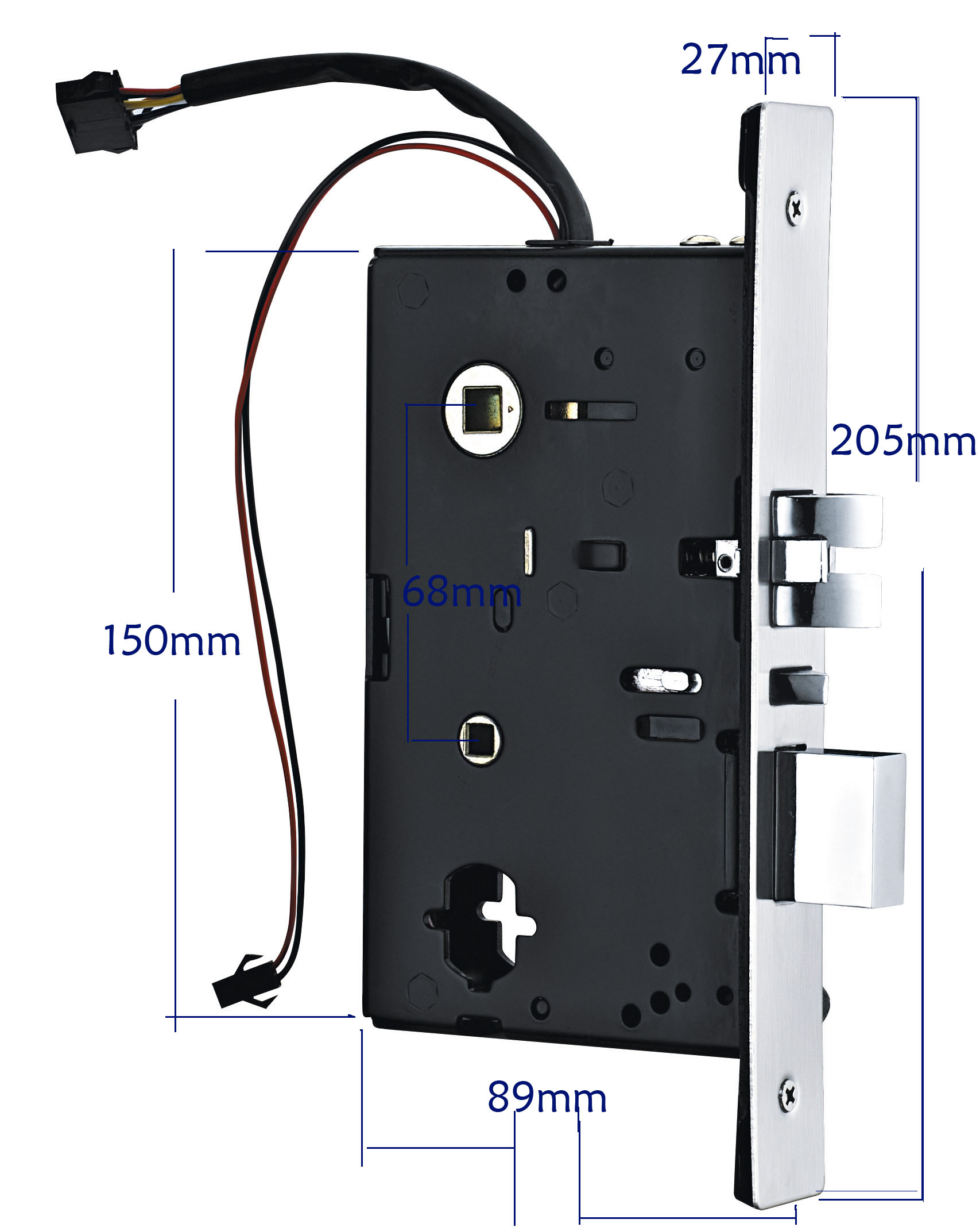該款酒店鎖配置的鎖芯,采用的是國際標準的5舌鎖芯。有防撬保險舌和室內反鎖大方舌,具有機械鑰匙應急開門。