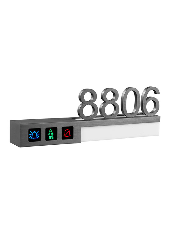 獨(dú)家設(shè)計“請勿打擾“燈亮?xí)r,按門鈴不響應(yīng),解除客人的煩惱,給客人更多的私人空間,提高服務(wù)質(zhì)量。LED背光觸摸實現(xiàn)房態(tài)控制,燈位指示一目了然,有利于夜間識別,符合現(xiàn)代潮 流。
