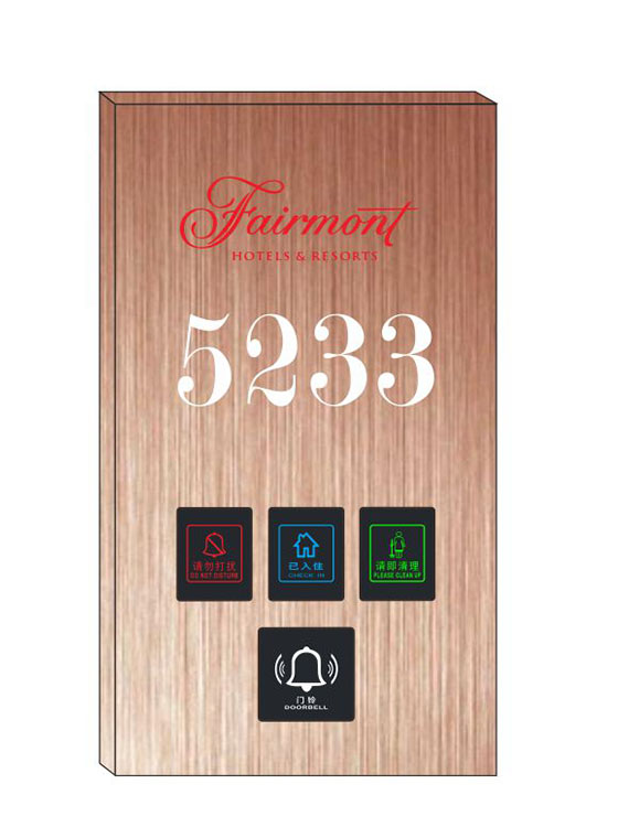 內置過載保護,工作穩定可靠,電腦芯片可編程控制,具備“房號(酒店名稱)”、 “請勿打擾”、“清理房間”、“門鈴”,智能化互鎖指示,極具人性化,讓室內室外溝通隨心所欲