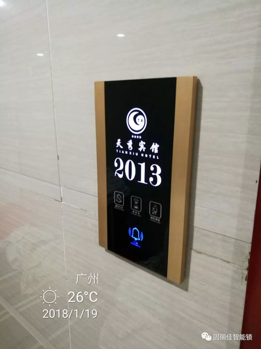 祝賀廣州天秀賓館智能電子門鎖、智能門牌觸摸開關調試安裝完成