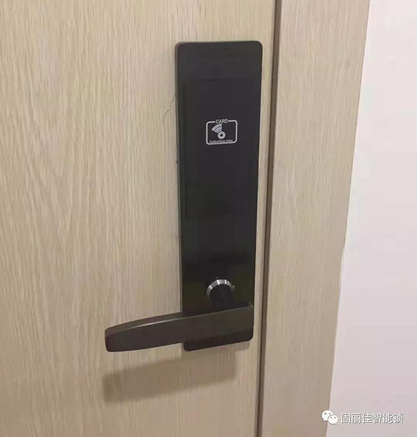 維福頓公寓此次選擇安裝的固麗佳819Fh黑古銅智能公寓鎖,采用不銹鋼的材質,耐腐蝕耐高溫,精美的外觀設計顯得非常簡約大氣。